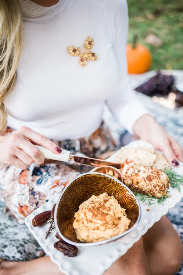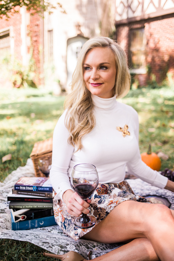 So why a Halloween picnic? Because it's the most beautiful time of year consisting of sweater weather, gorgeous colors, and few bugs! Most people just prefer to be outside this time of year, and it won't be long before the temps drop too low to even think of a picnic. Halloween is simply one of the most fun holidays to celebrate so find a spooky, cozy backdrop and set your perfect picnic of lovely food, a few books, and wine!