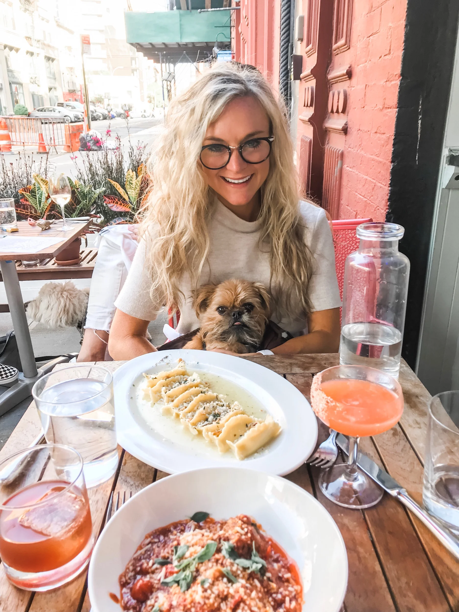 When Tres and I travel, we never even think about eating the basic 3-square meals a day. Food is so much more to us than that. Food and drink is what’s most important to us when on holiday, so we center each day around just that and tend to do “food hops.” If you follow me on Instagram, you know it’s hard to believe how many restaurants/bars we will hit in one day and how much we eat when we do, but it’s all true and it’s how we like to explore different cities. A lot of times, I will plan a themed food/drink hop – like this one, a pasta hop. All day long, we went to the top pasta restaurants, got a glass of wine or cocktail, and asked for the pasta dish they’re most-known for and shared it. On these food-hops, we can hit anywhere from 5 to 10 restaurants seeking out the best dishes. And it’s so. much. fun! This is my NYC Pasta hop guide with several other great restaurants/bars in case you get pasta-ed out. I have no idea how that’s possible though!