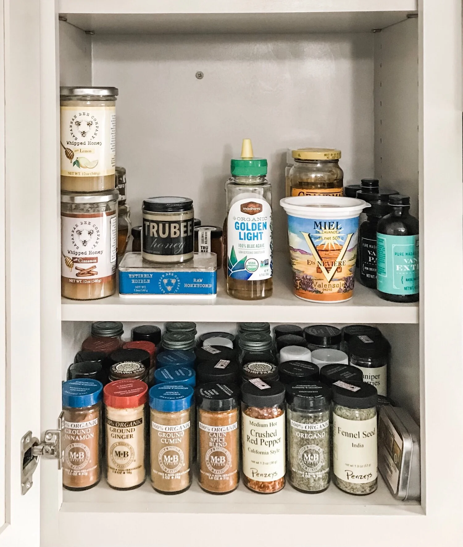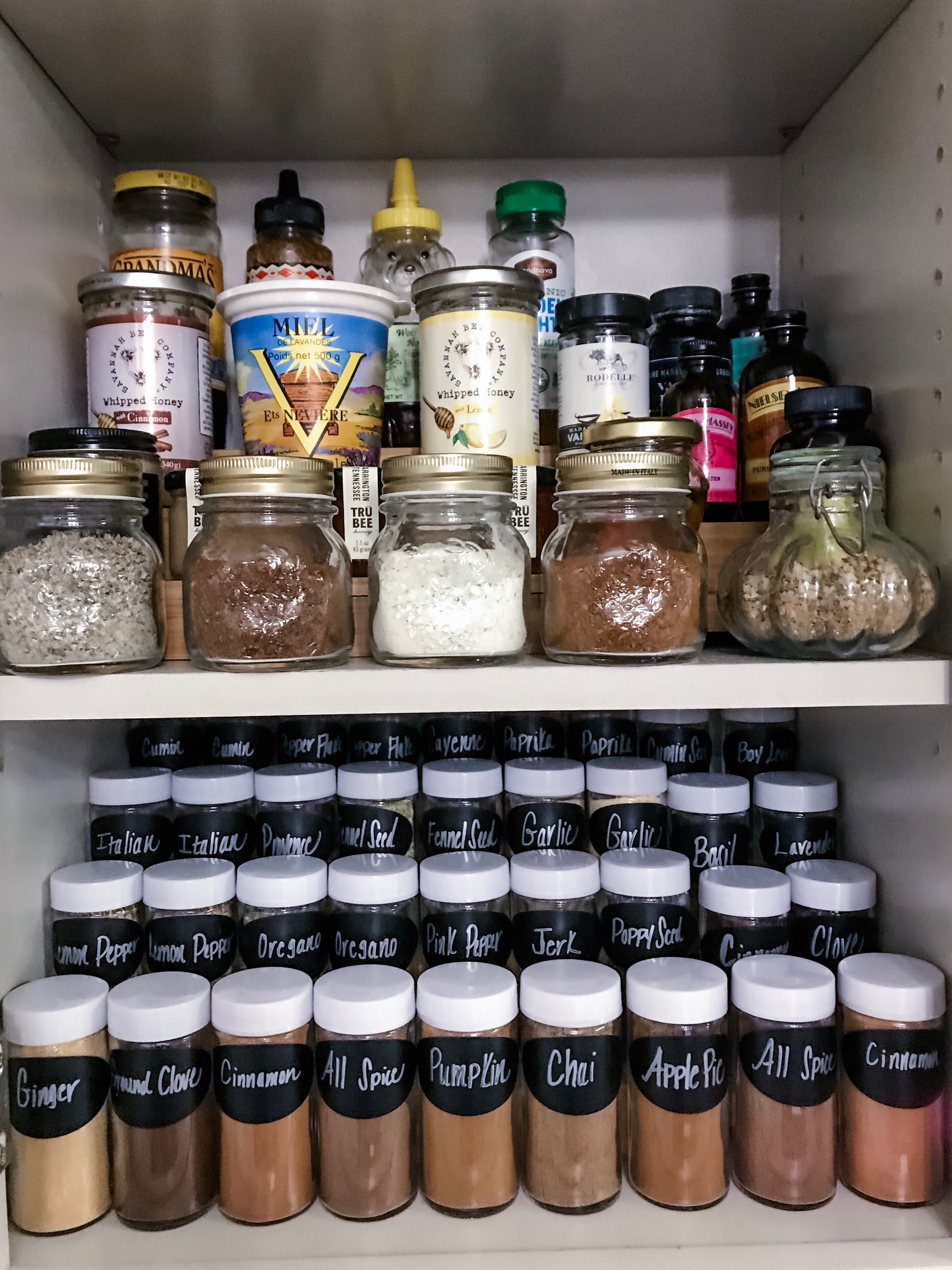 I have wanted a uniformed spice cabinet since we moved into our home and just never got around to doing it. It’s finally exactly how I pictured it, and I feel like a new person every time I open the cabinet.
